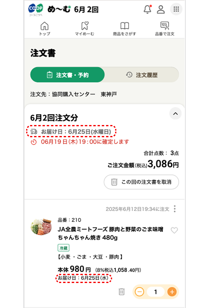 お届け日の確認方法